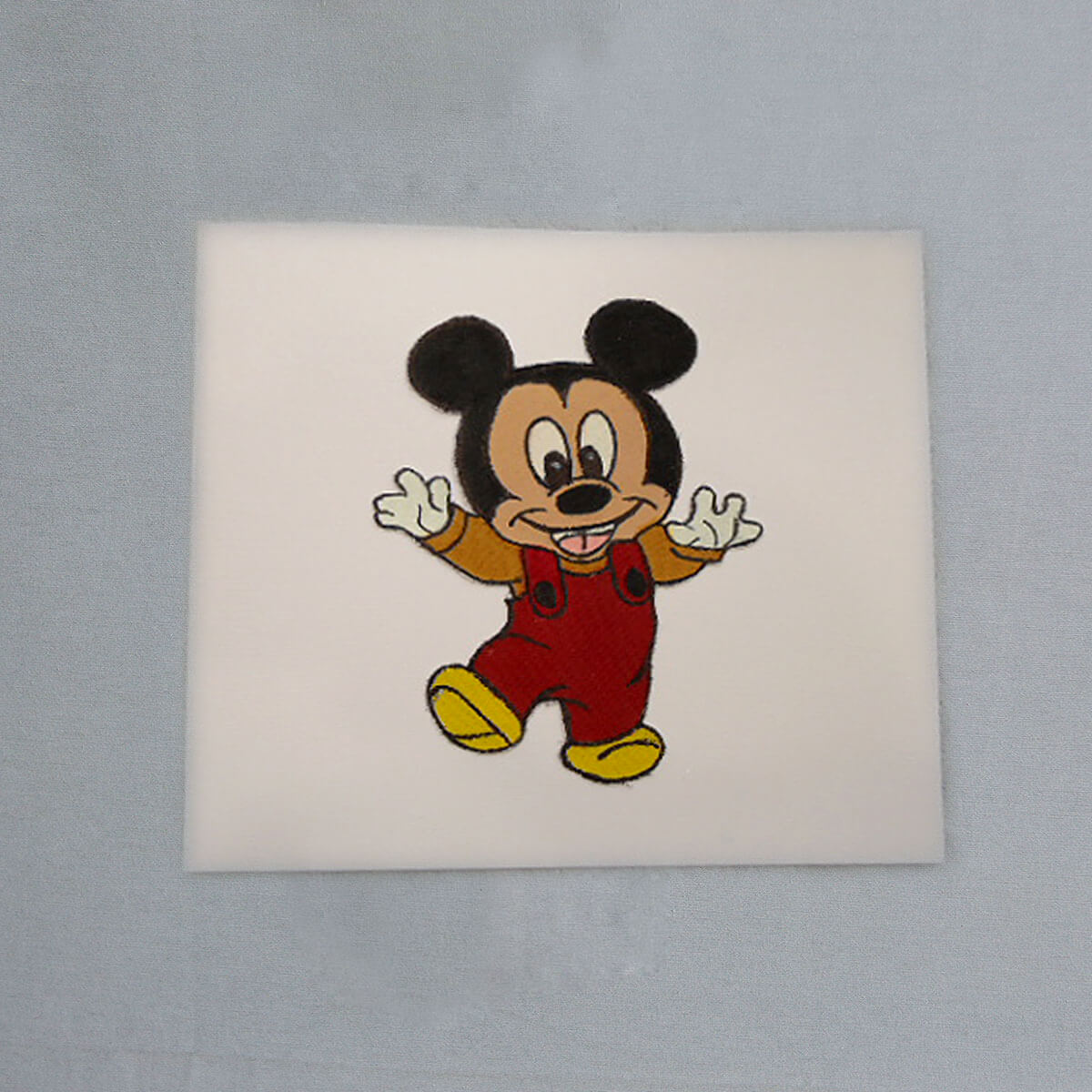 Ευχετήρια κάρτα με τον Μickey ζωγραφισμένο στο χέρι από πανί.