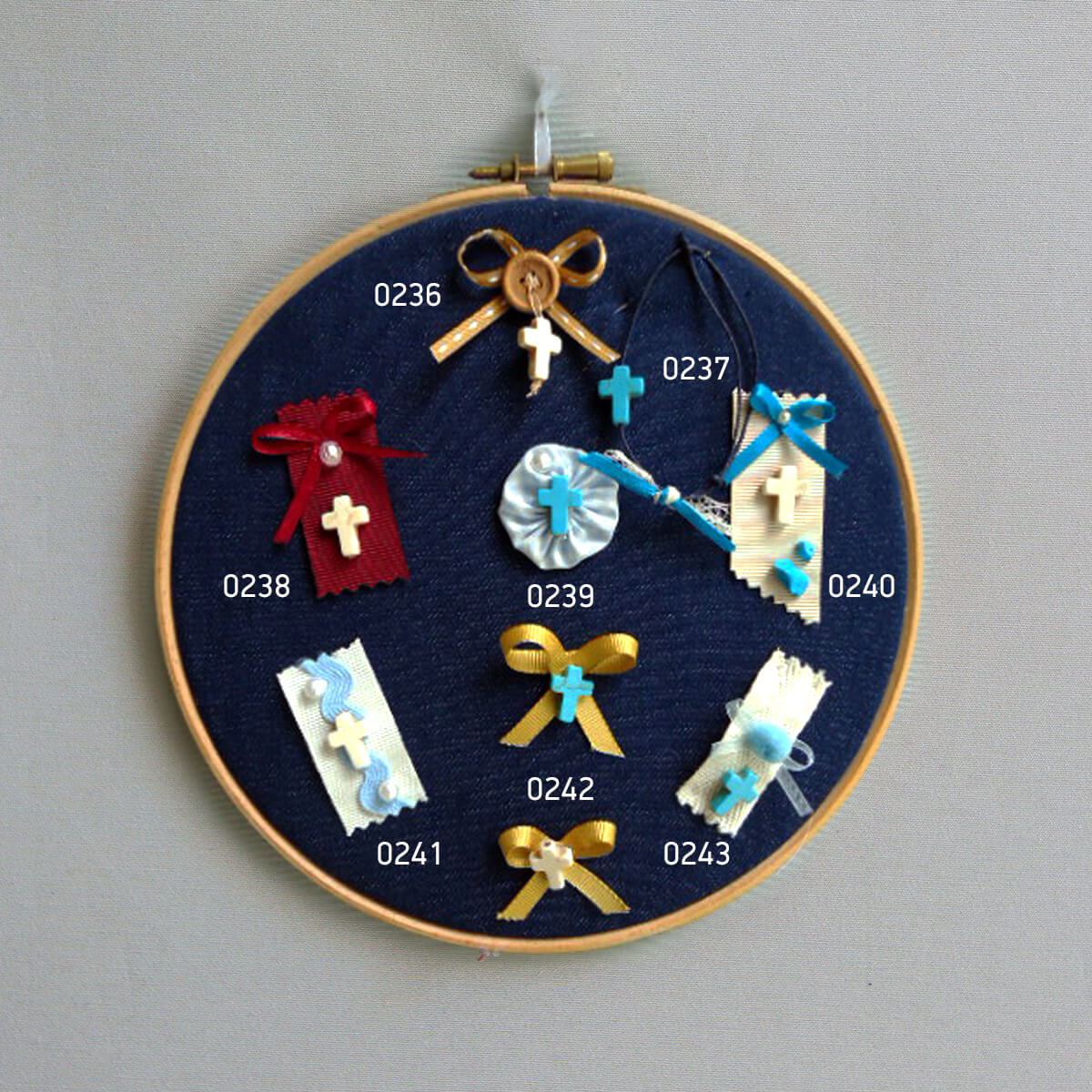 Σε ivory γκρο κορδέλα λευκό φιλντισένιο σταυρουδάκι και τριανταφυλλάκι από παγιέτες.